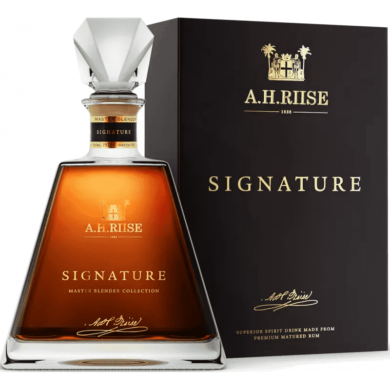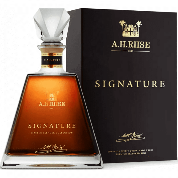 Cet assemblage premium est élaboré à partir des meilleurs fûts de tous âges et toutes origines. Les dernières gouttes de ces fûts sont utilisées pour réaliser ce blend unique. Les distillats les plus admirables ont vieilli en fûts de chêne américain ex bourbon entre 21 et 40 ans, ce qui lui apporte sa magnifique complexité et justifie l’engagement sincère, véritable profession de foi d’AH Riise qui a nommé son chef d’oeuvre, Signature, et scande : “Une signature vous engage entièrement”.