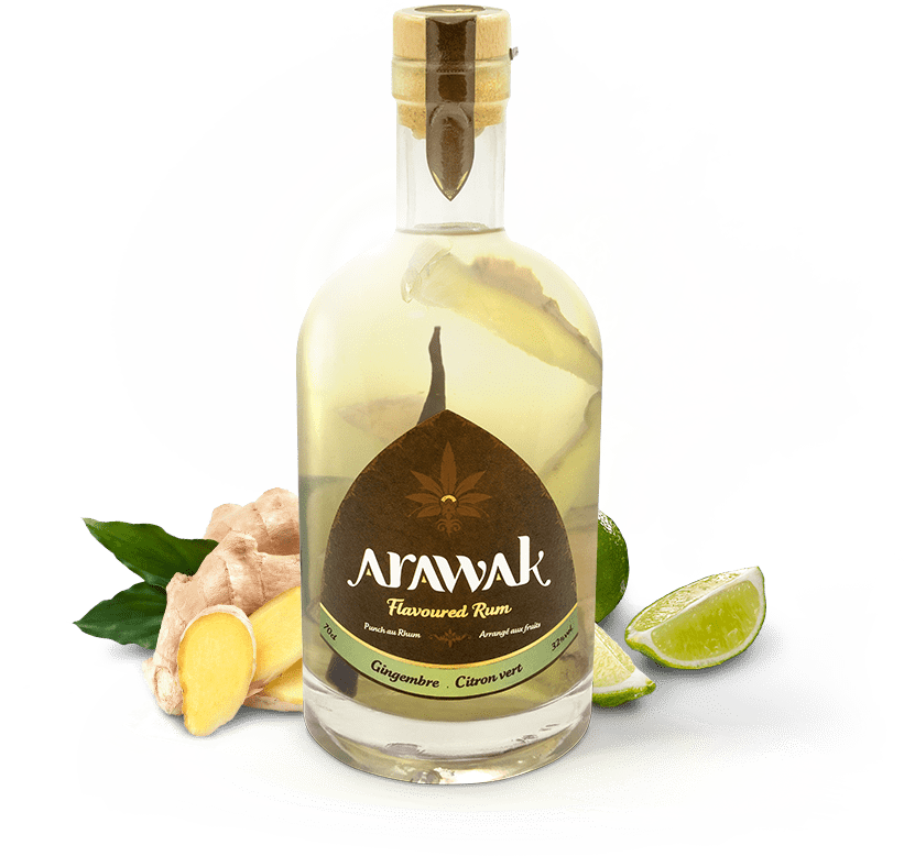 Composition : rhum blanc agricole de Guadeloupe, gingembre, citron vert (infusion), sucre de canne