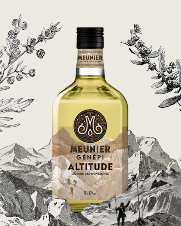 Cette recette de génépi, fruit de la longue expérience de la Maison Meunier dans l’élaboration de distillats d’exception, sublime le Génépi dans une variation intense en arômes de plantes et faiblement dosée en sucre. Son nez franc et intense et ses notes florales et herbacées en font la liqueur de plantes idéale des amateurs de saveurs alpestres.