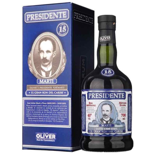 Presidente Marti 15 est un rhum artisanal de haute qualité de la République dominicaine, qui n’est pas produit en masse mais avec une passion et une grande attention aux détails. C’est un mélange de certains des meilleurs rhums de toutes les Caraïbes. L’ensemble du processus de mélange a été supervisé par Master Blender de la distillerie Oliver & Oliver.