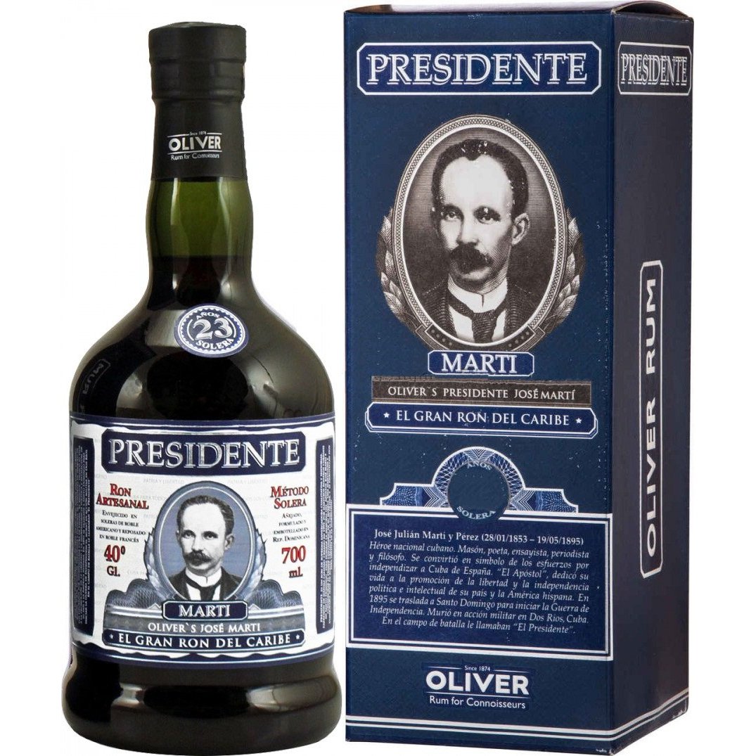 Quant à la ligne cubaine, ce rhum a également un nom qui a ses racines dans la famille cubaine Oliver. José Julián Martí Pérez était un homme politique, écrivain et leader du mouvement indépendantiste cubain au milieu du XIXe siècle. Aujourd’hui, il est considéré comme l’un des plus grands héros nationaux de Cuba. L’hommage à ce héros se présente sous la forme de rhum, qui mûrit dans des fûts de chêne français et américain selon la méthode traditionnelle de la solera. L’association de rhums d’âges différents donne au rhum Presidente Marti 23 douceur et profondeur. Excellent en combinaison avec un cigare cubain !