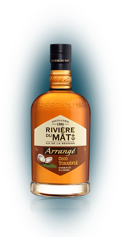 Élaborée à partir de rhum Rivière du Mât, de noix de coco macérées et d’épices sélectionnées, sa recette Arrangé Coco Torréfié s’apprécie pure ou sur glace.